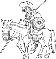 Fue luego a ver su rocín, y, aunque tenía más cuartos que un real y más tachas que el caballo de Gonela, que tantum pellis et ossa fuit, le pareció que ni el Bucéfalo de Alejandro ni Babieca el del Cid con él se igualaban.