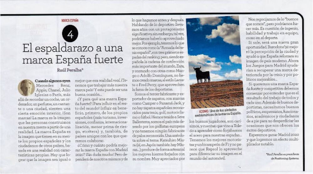 Cuando algunos oyen Mercedes Benz, Apple, Chanel, Julio Iglesias o París, más allá de recordar un coche, un ordenador, un perfume, un cantante o una ciudad, sienten una cierta emoción interior. ¡Son marcas! La “Marca” es la imagen que las personas construimos en nuestra mente a partir de una realidad. La “Marca España” es la imagen que tienen en su mente los propios españoles y los ciudadanos de otros países, basada en una realidad con características propias. Hay que lograr que la imagen sea igual o mejor que esa realidad “real”. ¡Tenemos  que “trabajar” más nuestra marca país! Y esta puede ser una buena ocasión…
